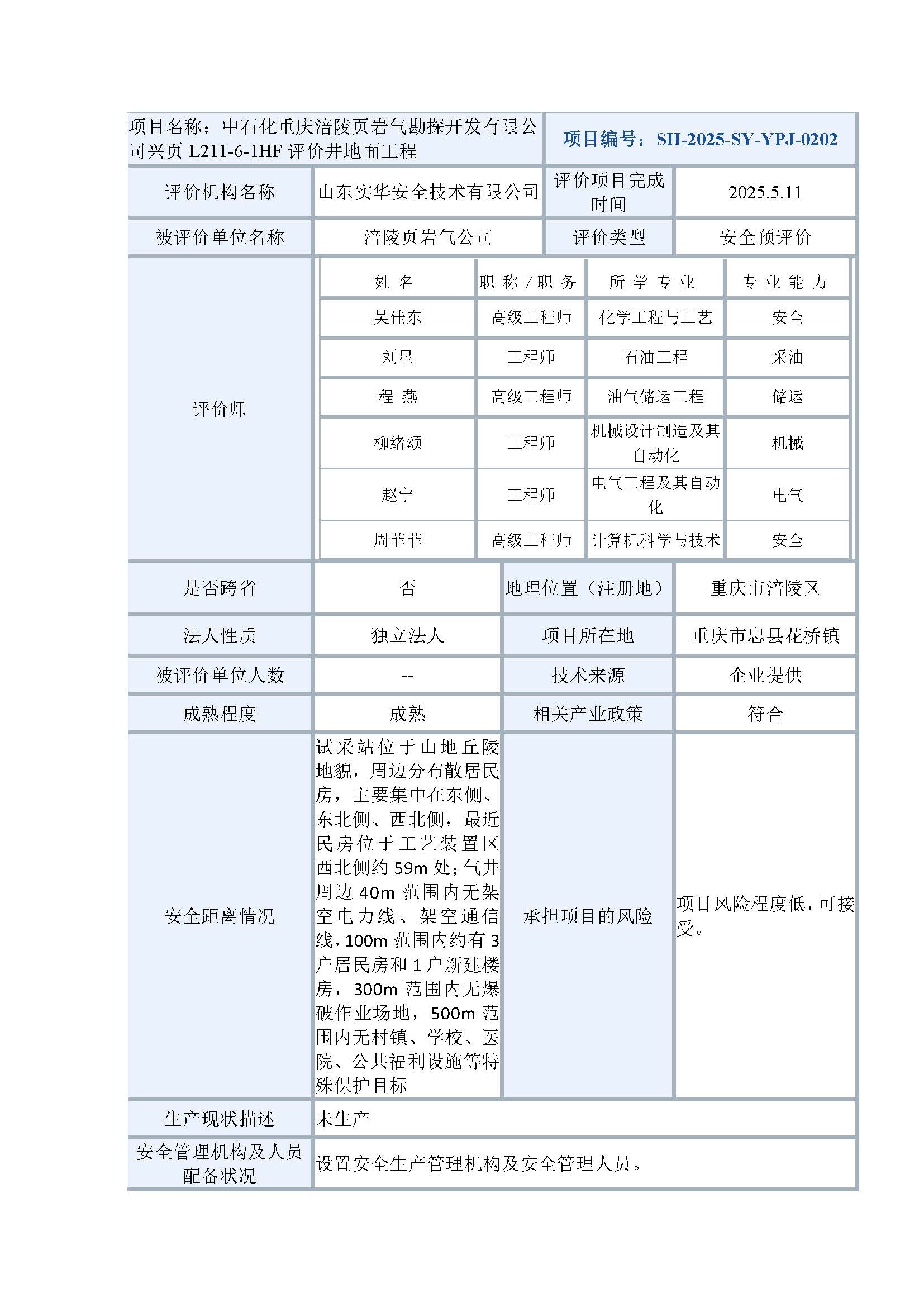 中石化重慶涪陵頁(yè)巖氣勘探開發(fā)有限公司興頁(yè)L211-6-1HF評(píng)價(jià)井地面工程安全預(yù)評(píng)價(jià)